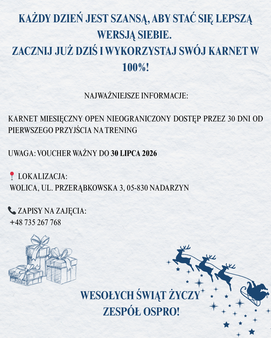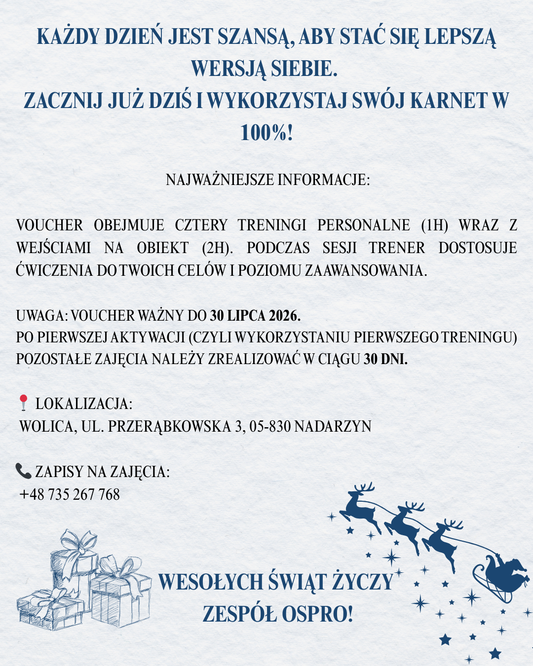 Świąteczny Voucher Treningowy 4 treningi personalne wraz z 4 wejściami na obiekt